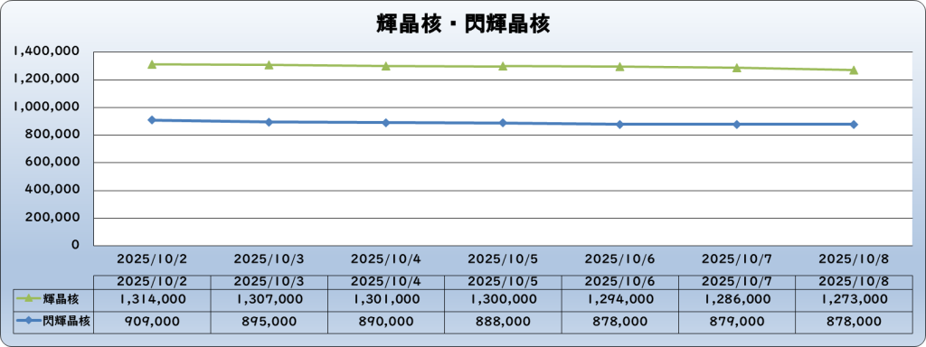 輝晶核 | 1,273,000 | -44,000 | -3.3% | 1,317,000 |