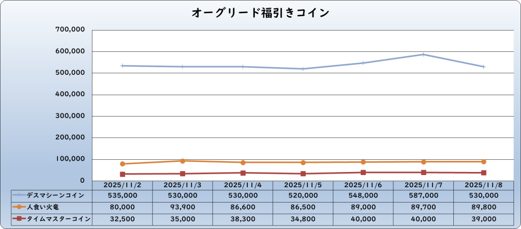 | デスマシーンコイン | 530,000 | -22,000 | -4.0% | 552,000 |