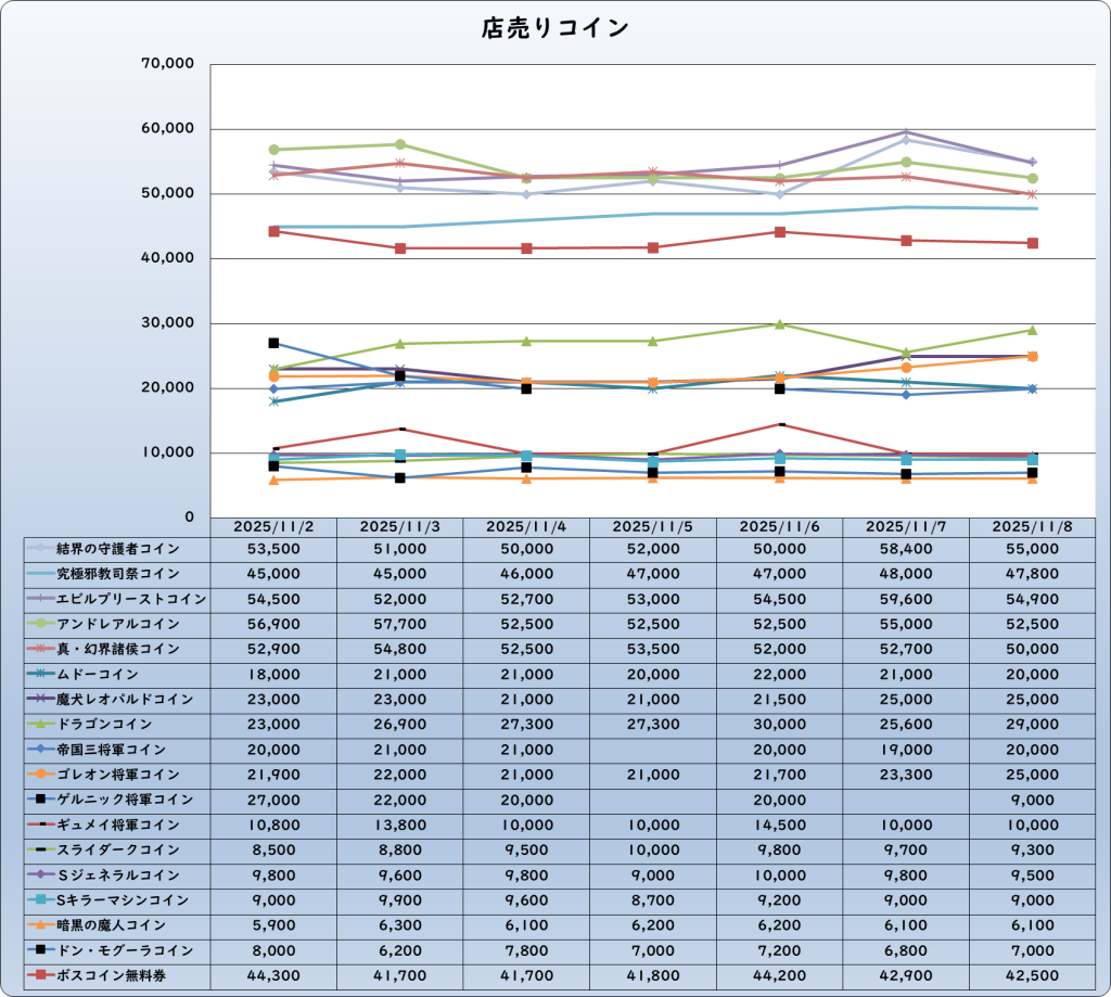 | 帝国三将軍コイン | 20,000 | -2,000 | -9.1% | 22,000 |