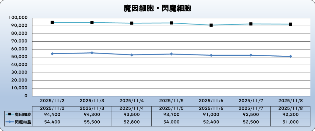 | 閃魔細胞 | 51,000 | -2,000 | -3.8% | 53,000 |