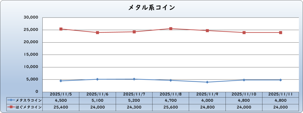 | はぐメタコイン | 24,000 | -400 | -1.6% | 24,400 |