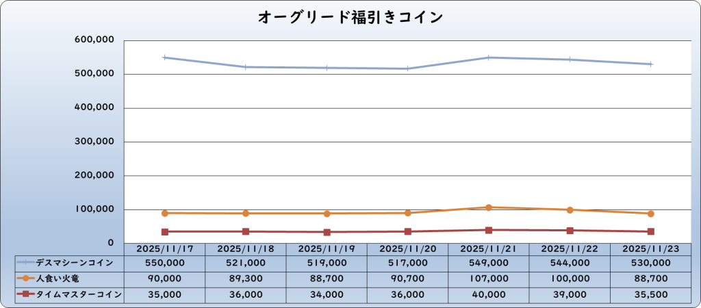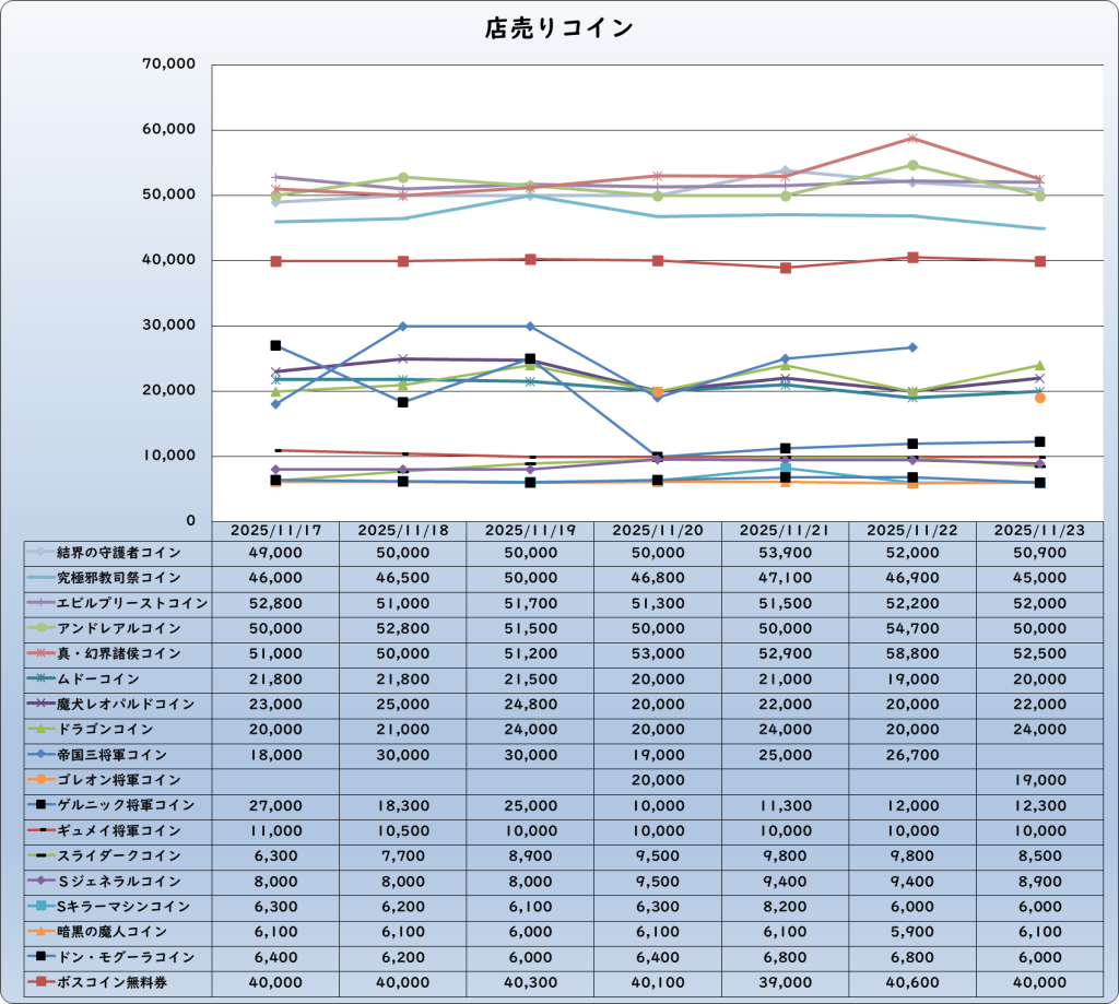| 究極邪教司祭コイン | 45,000 | -1,500 | -3.2% | 46,500 |