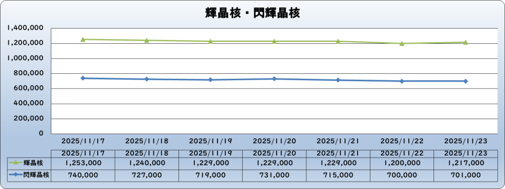 | 輝晶核 | 1,217,000 | -23,000 | -1.9% | 1,240,000 |