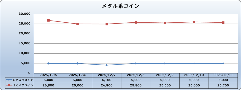 | はぐメタコイン | 25,700 | 700 | 2.8% | 25,000 |