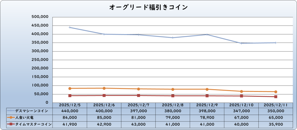 | デスマシーンコイン | 350,000 | -45,000 | -11.4% | 395,000 |