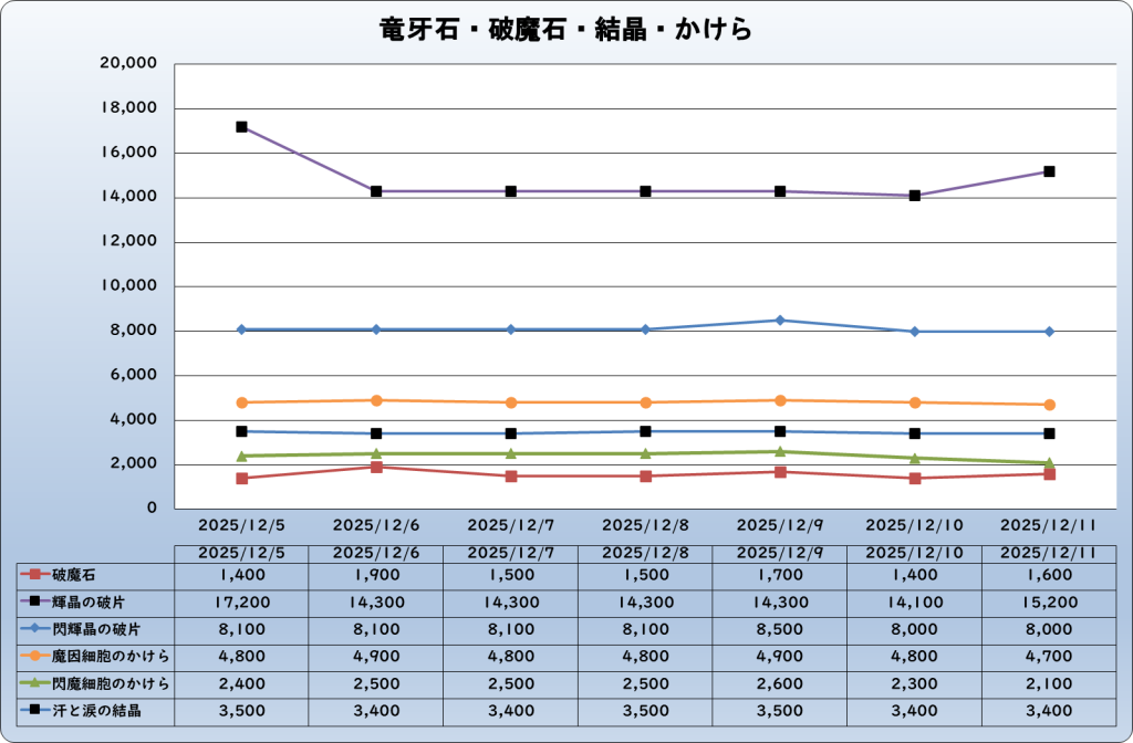 | 輝晶の破片 | 15,200 | -2,000 | -11.6% | 17,200 |