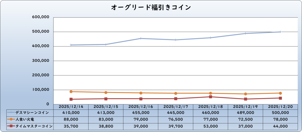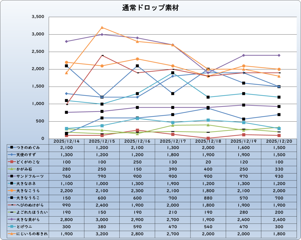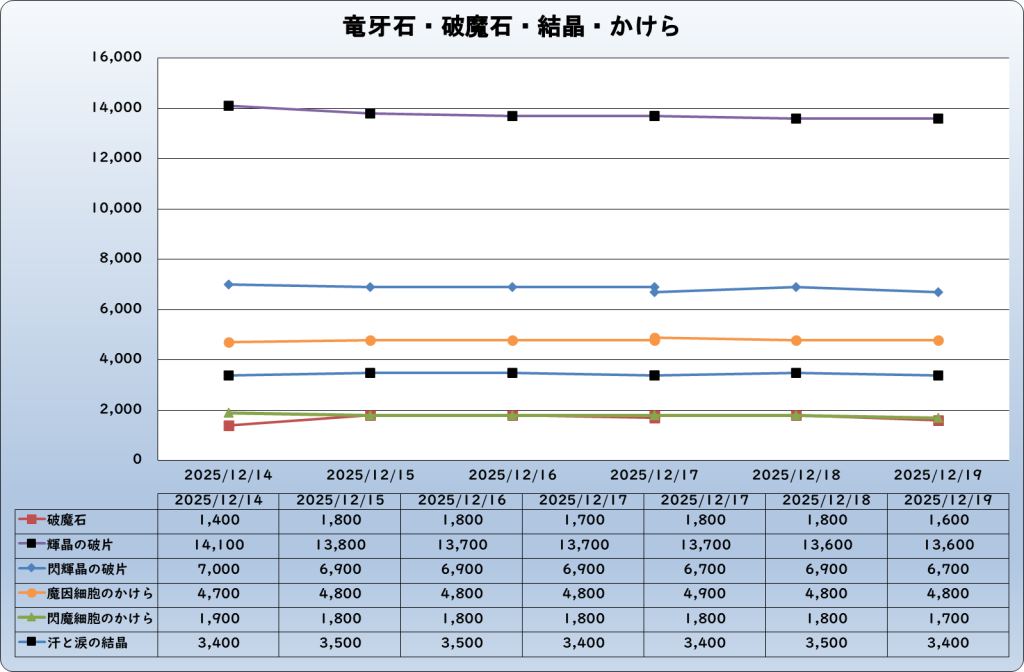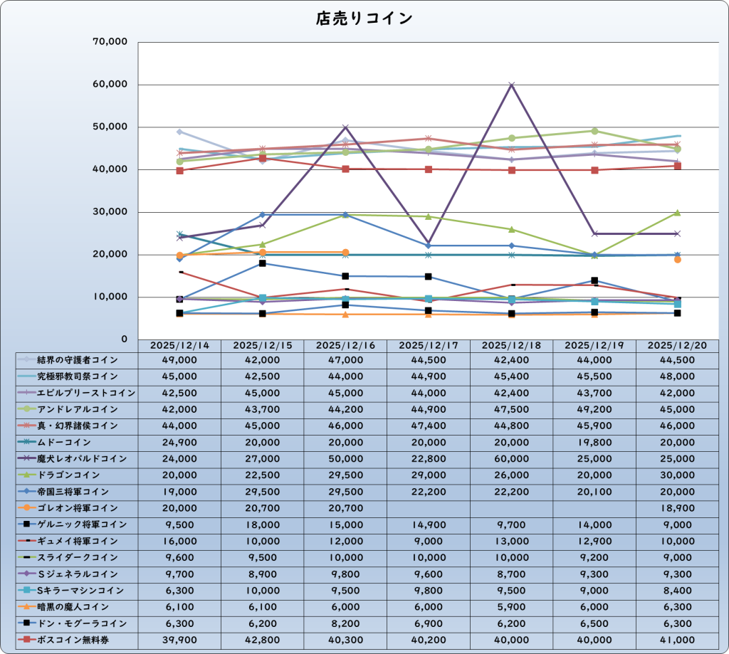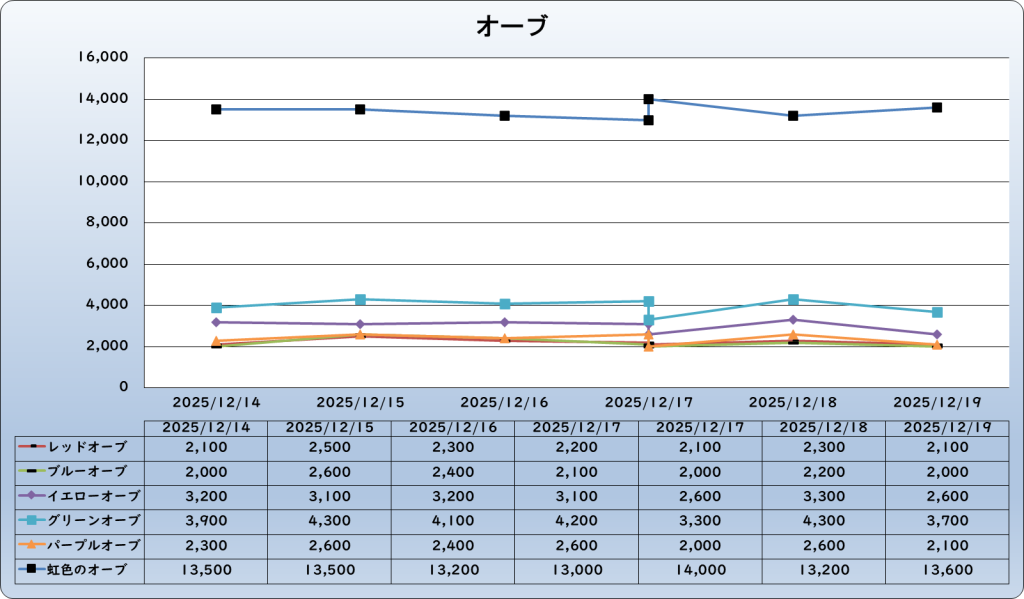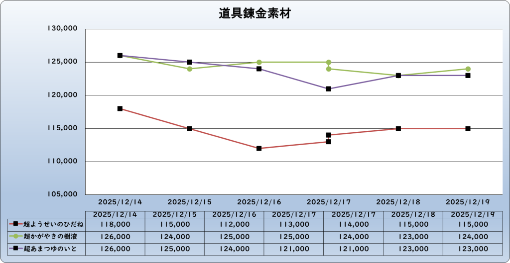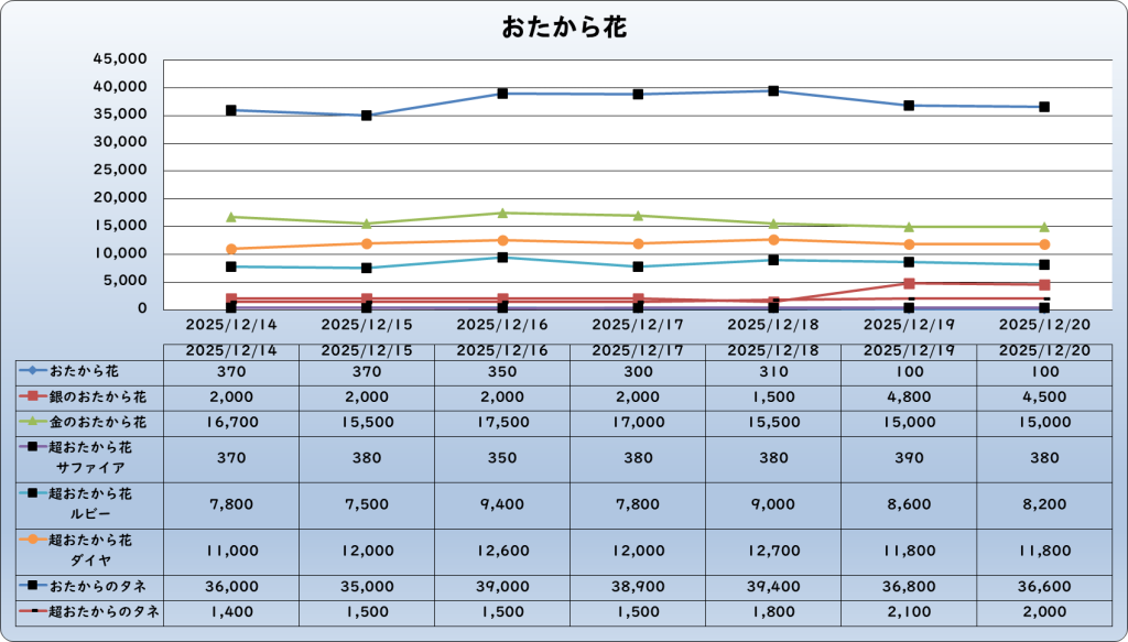 それでは、2025年12月20日までの1週間分のバザー相場の動きを載せています。