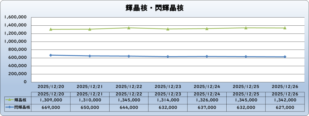 | 閃輝晶核 | 627,000 | -52,000 | -7.7% | 679,000 |