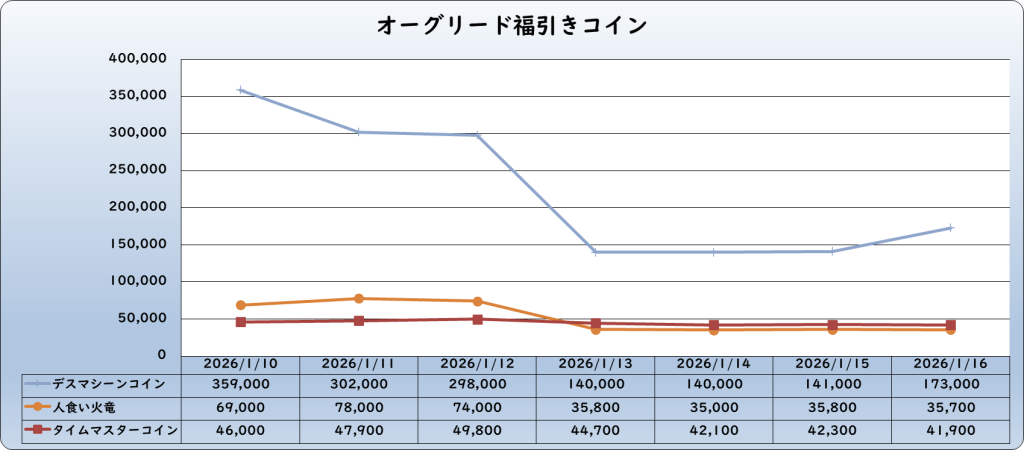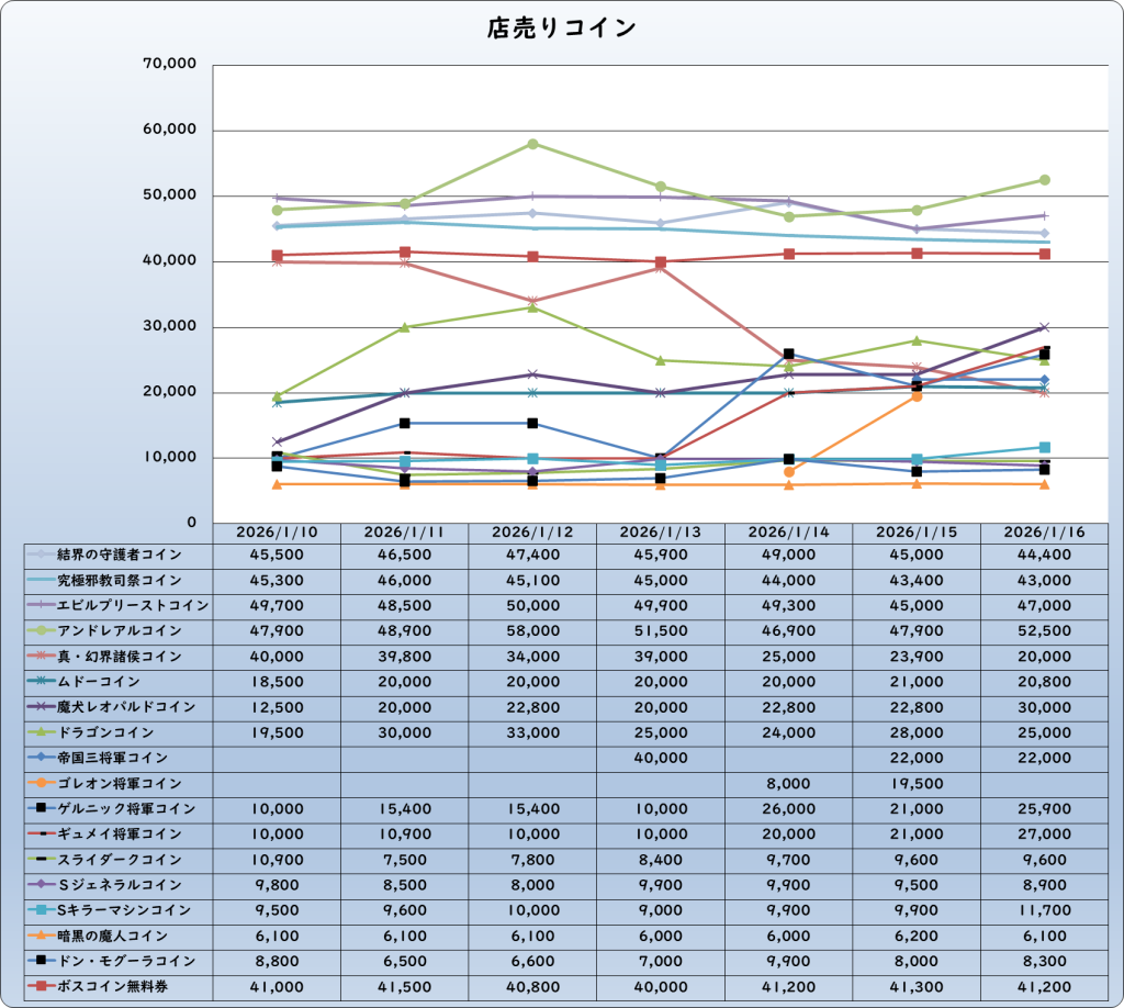 | 究極邪教司祭コイン | 43,000 | -2,000 | -4.4% | 45,000 |