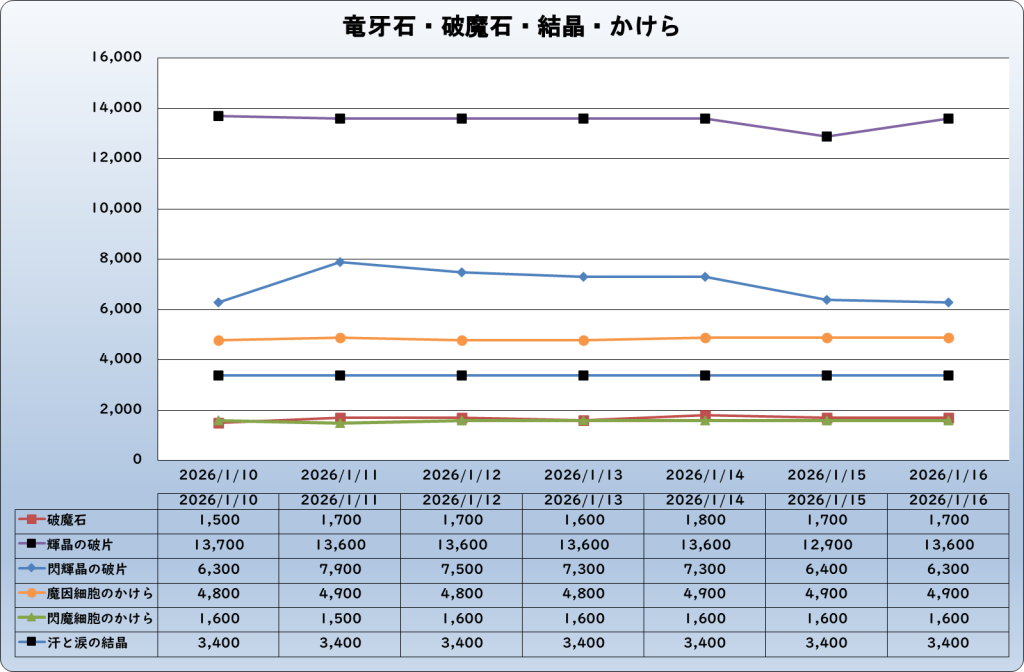 | 輝晶の破片 | 13,600 | -200 | -1.4% | 13,800 |