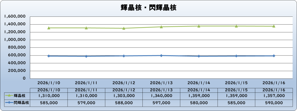 | 輝晶核 | 1,357,000 | 40,000 | 3.0% | 1,317,000 |