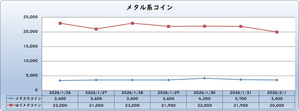 | はぐメタコイン | 20,000 | -2,000 | -9.1% | 22,000 |