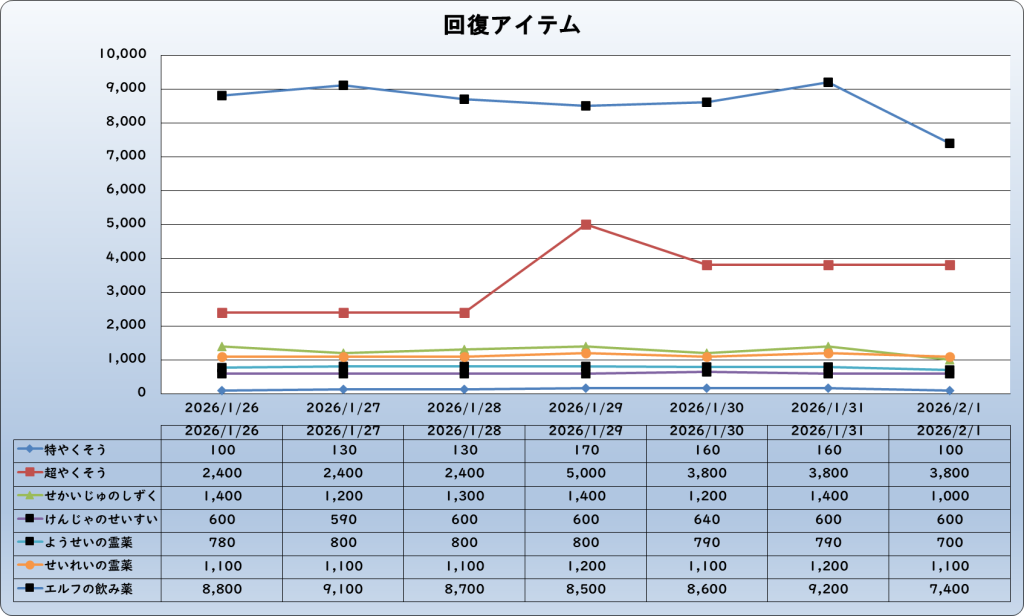 | せいれいの霊薬 | 1,100 | 100 | 10.0% | 1,000 |