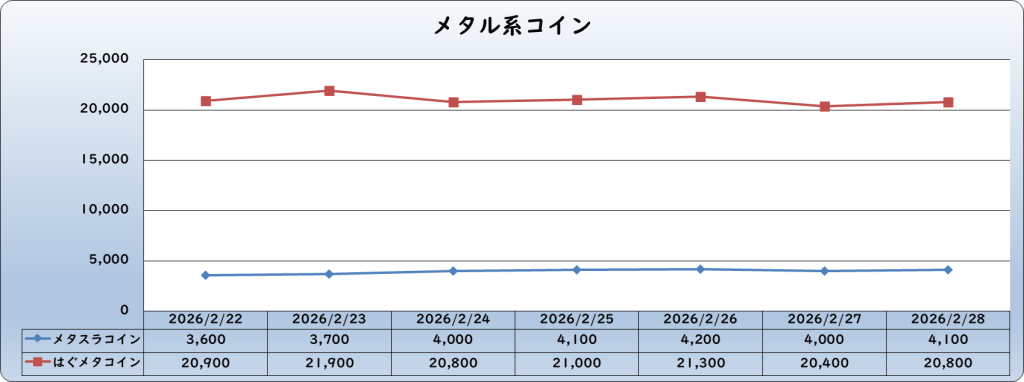 | はぐメタコイン | 20,800 | -200 | -1.0% | 21,000 |