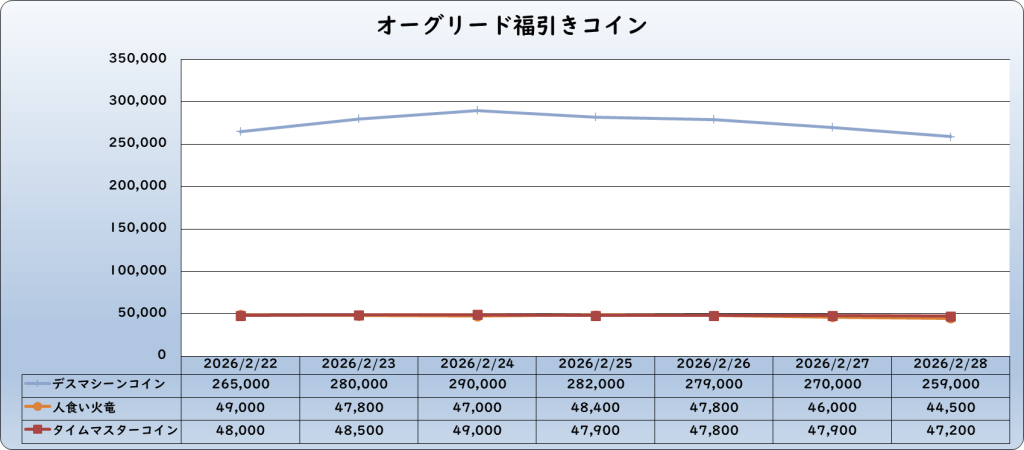 | 人食い火竜コイン | 44,500 | -2,500 | -5.3% | 47,000 |