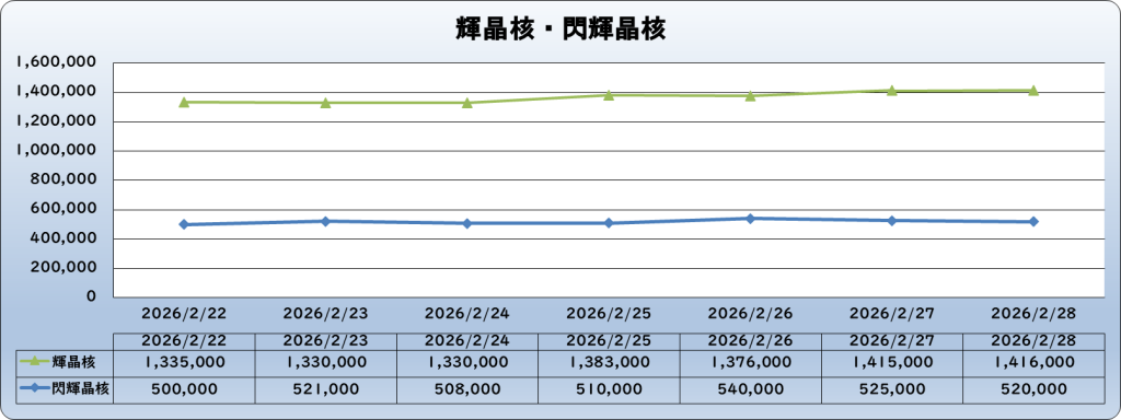 【バザー相場】輝晶核関連が値上がり中!閃輝晶核は続いてくれないのか…