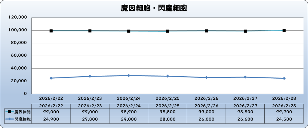 | 閃魔細胞 | 24,500 | -3,300 | -11.9% | 27,800 |