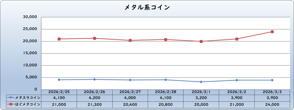 | メタスラコイン | 3,900 | -100 | -2.5% | 4,000 |