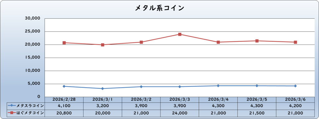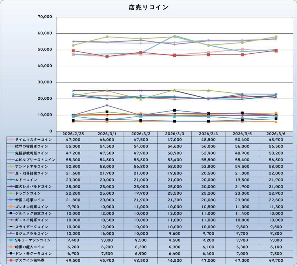 | Sキラーマシンコイン | 9,000 | -1,000 | -10.0% | 10,000 |
