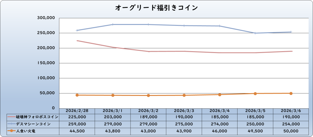 | デスマシーンコイン | 254,000 | -16,000 | -5.9% | 270,000 |