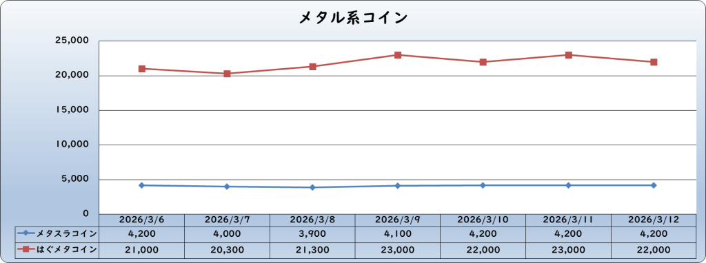 | メタスラコイン | 4,200 | -100 | -2.3% | 4,300 |