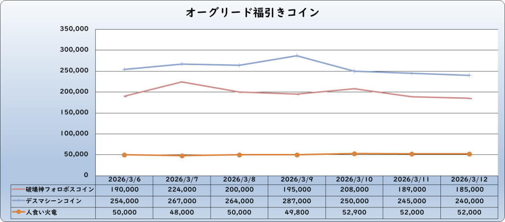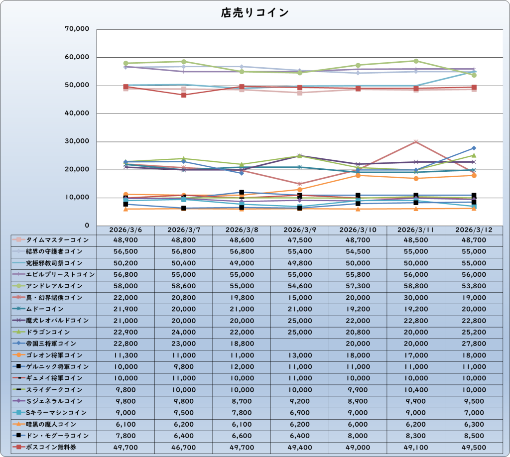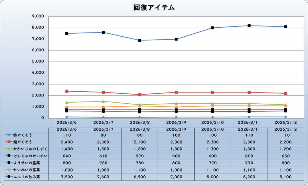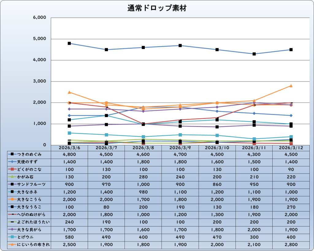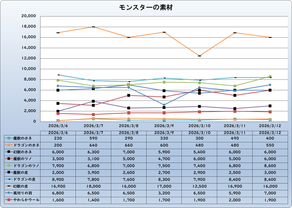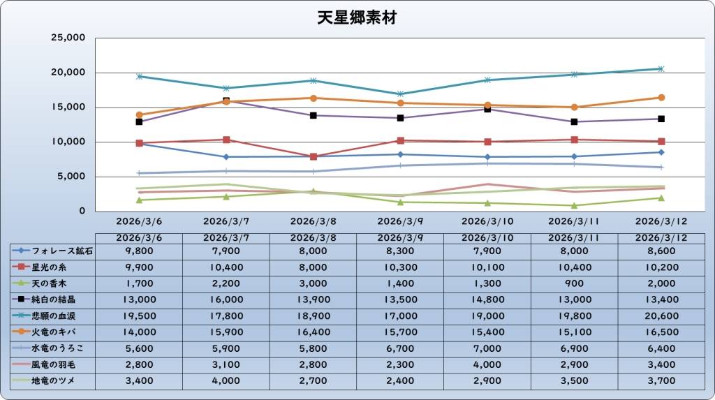 それでは、2026年3月12日までの1週間分のバザー相場の動きを載せています。