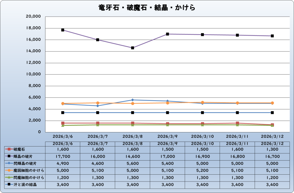| ゼーラズマ鉱石 | 13,900 | -3,100 | -18.2% | 17,000 |