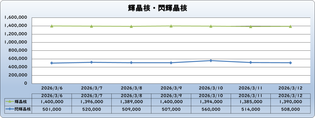 | 輝晶核 | 1,390,000 | 0 | 0.0% | 1,390,000 |