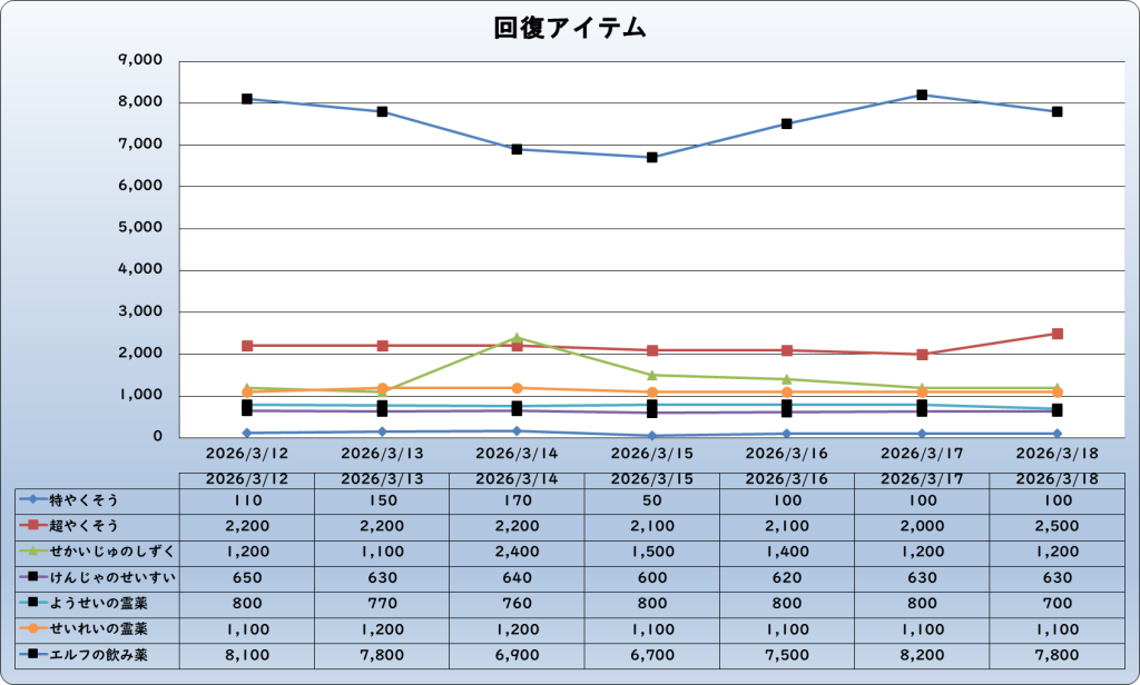 | せいれいの霊薬 | 1,100 | 0 | 0.0% | 1,100 |