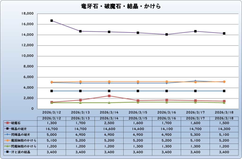 | 破魔石 | 1,500 | -100 | -6.3% | 1,600 |