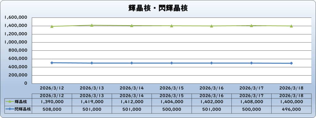 | 輝晶核 | 1,400,000 | 15,000 | 1.1% | 1,385,000 |