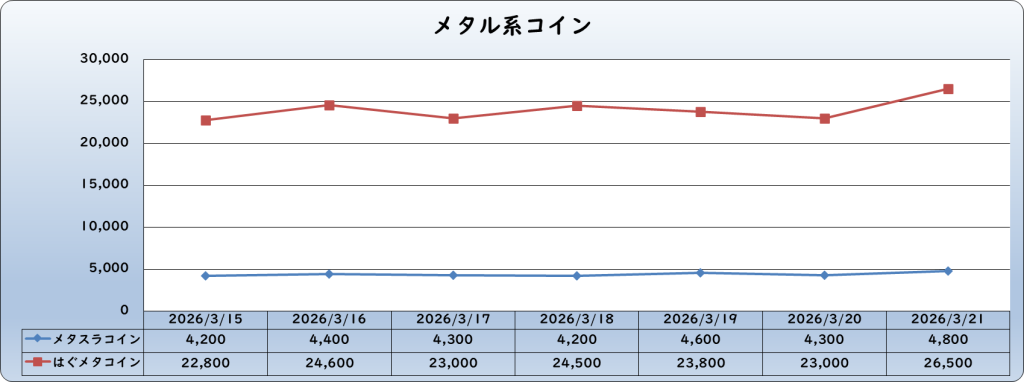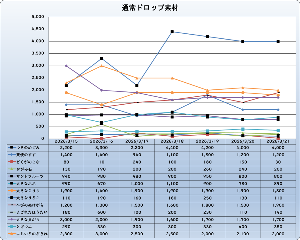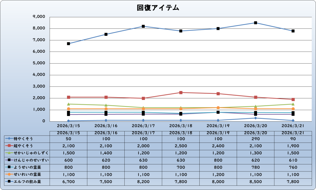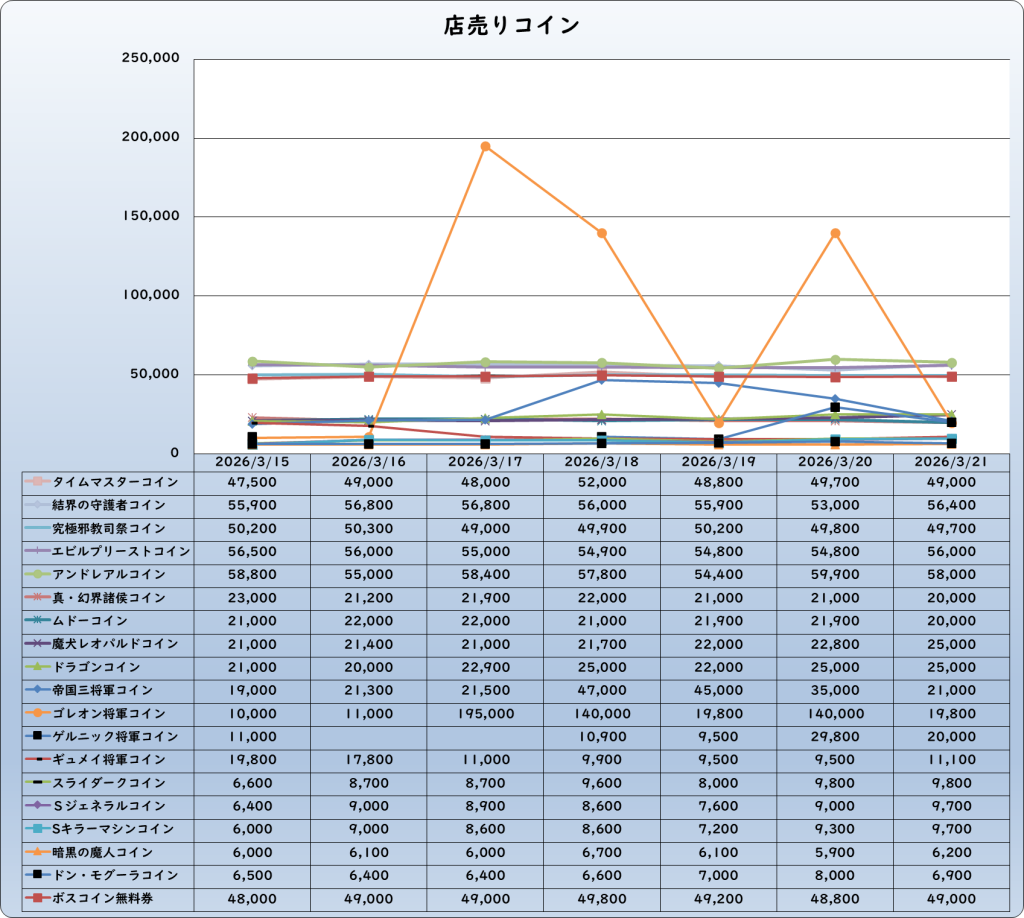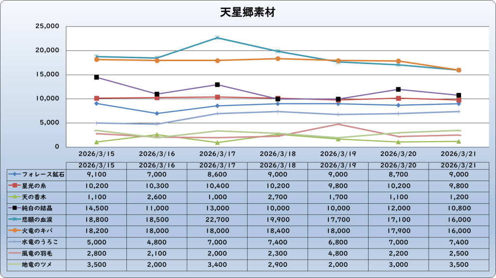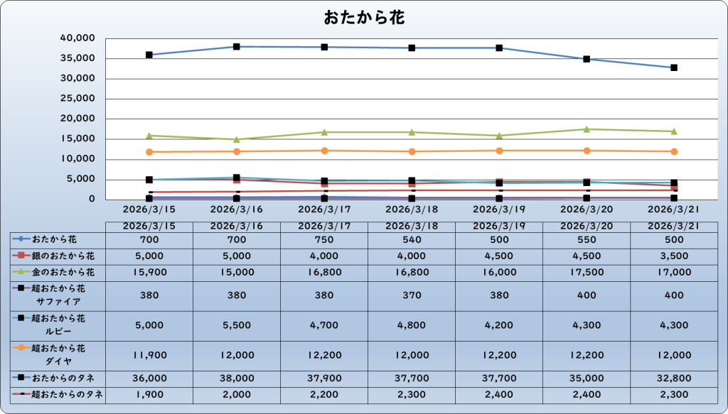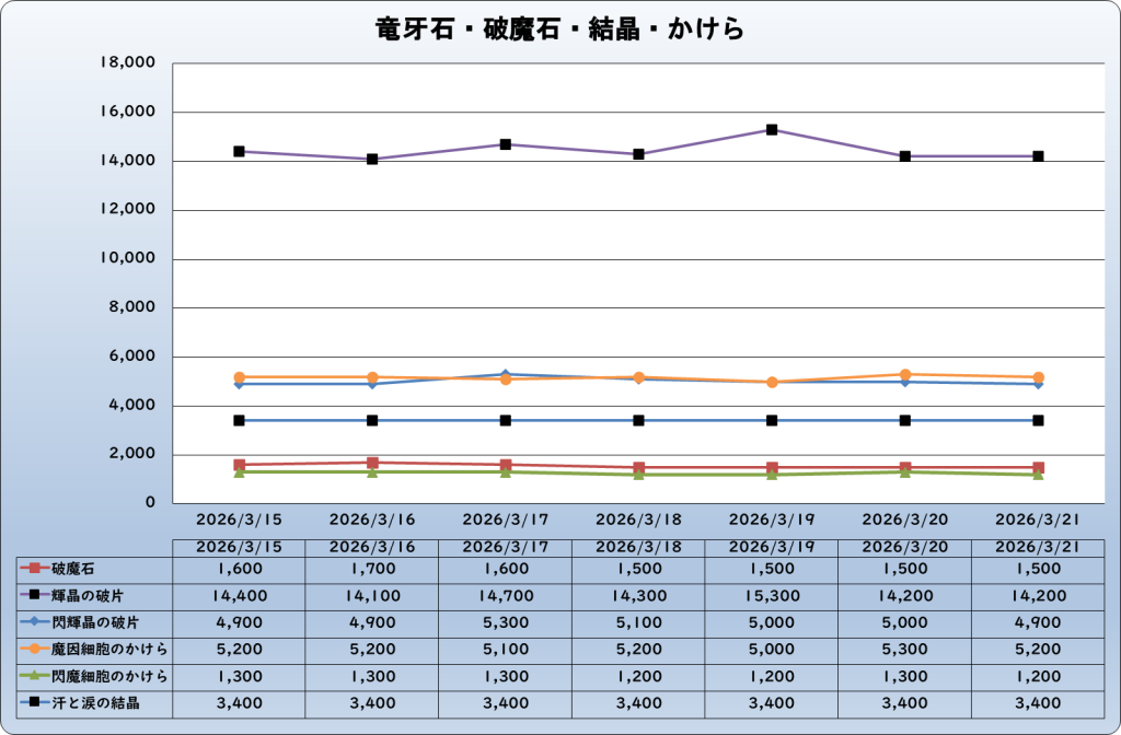 それでは、2026年3月21日までの1週間分のバザー相場の動きを載せています。