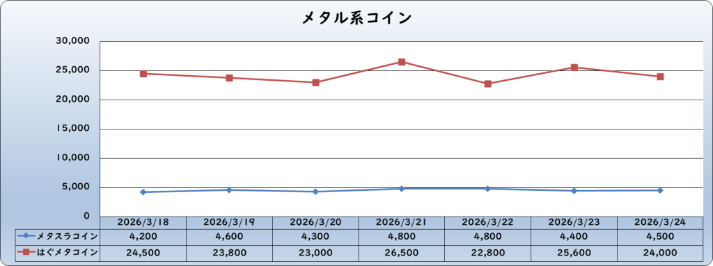 | メタルのカケラ | 7,600 | -300 | -3.8% | 7,900 |