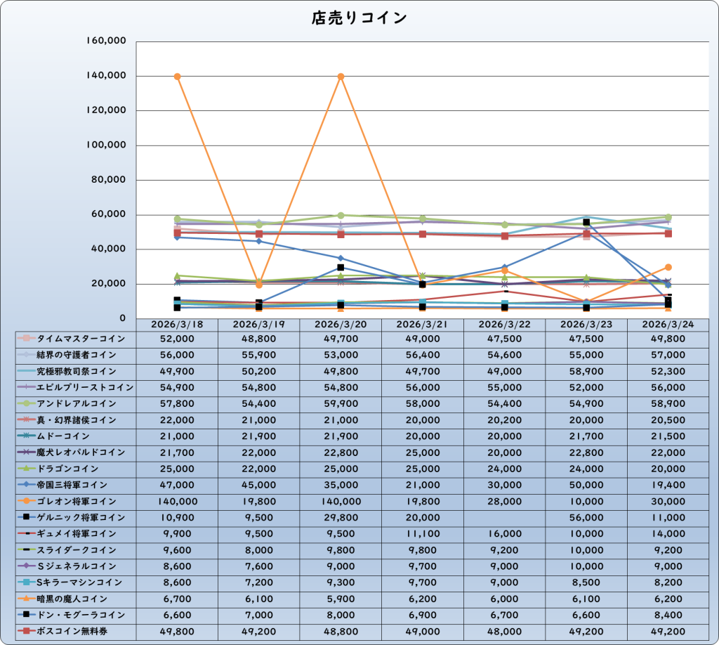 | ゴレオン将軍コイン | 30,000 | -165,000 | -84.6% | 195,000 |