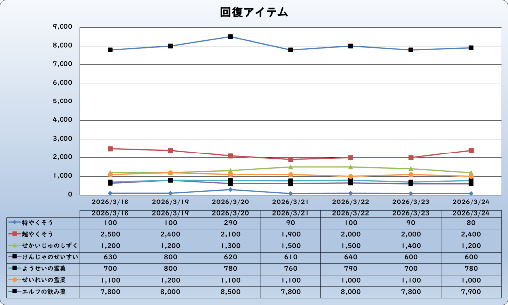 | エルフの飲み薬 | 7,900 | -300 | -3.7% | 8,200 |