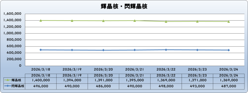 | 閃輝晶核 | 487,000 | -13,000 | -2.6% | 500,000 |